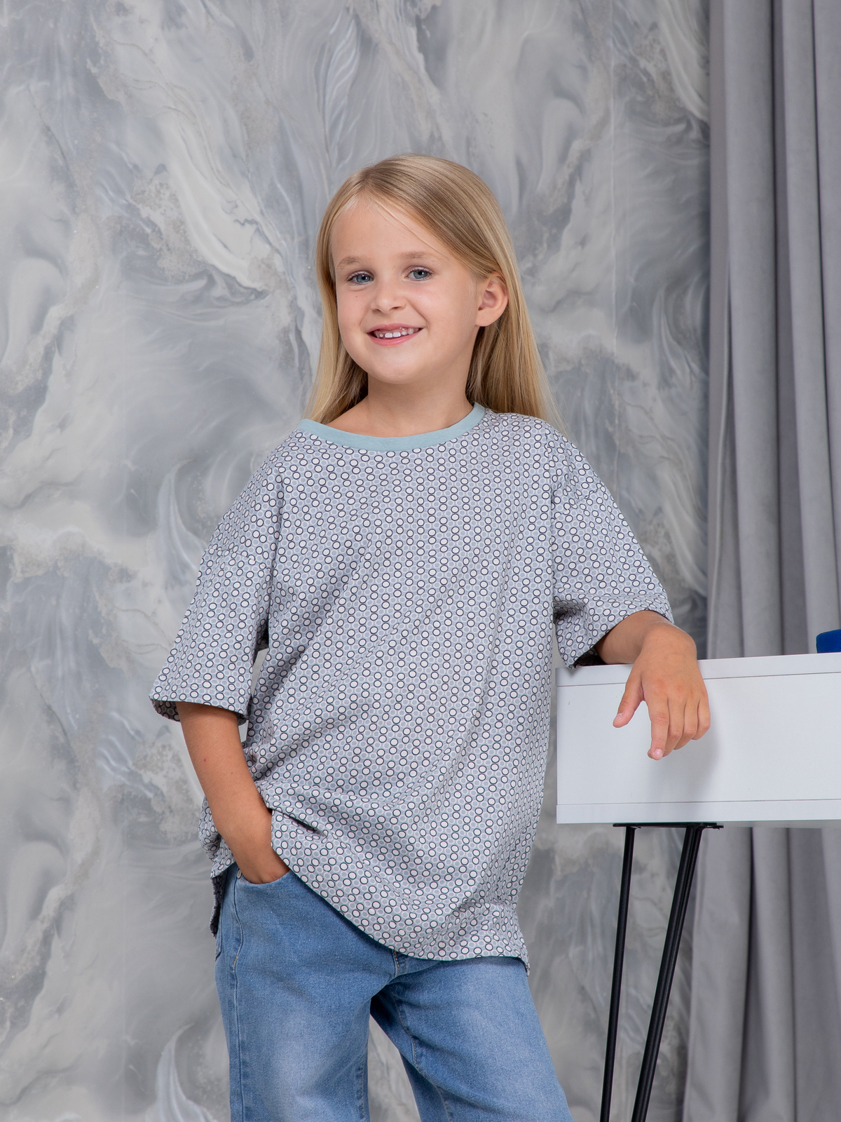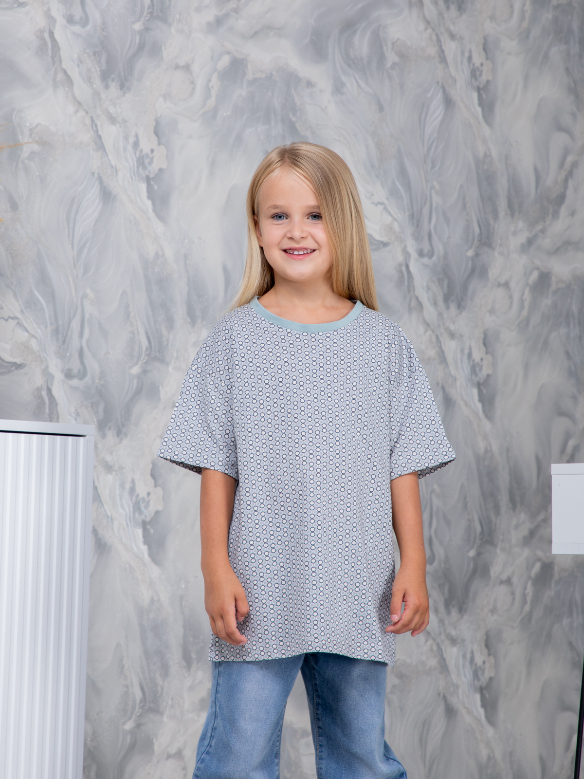 Детская футболка дФ-11/серый-экрюгорошки