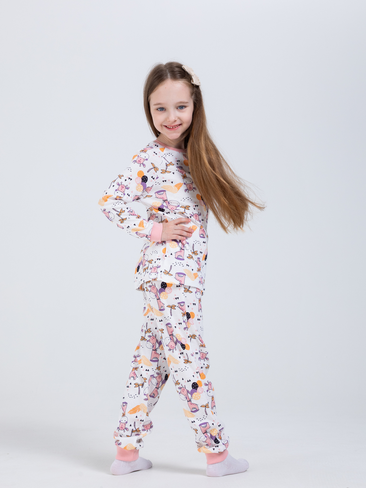 Детская пижама с брюками дПБ-41/жирафик-розовый