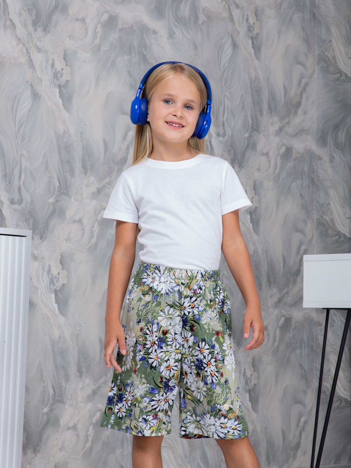 Детские шорты дШ-11/оливковый-ромашковоеполе