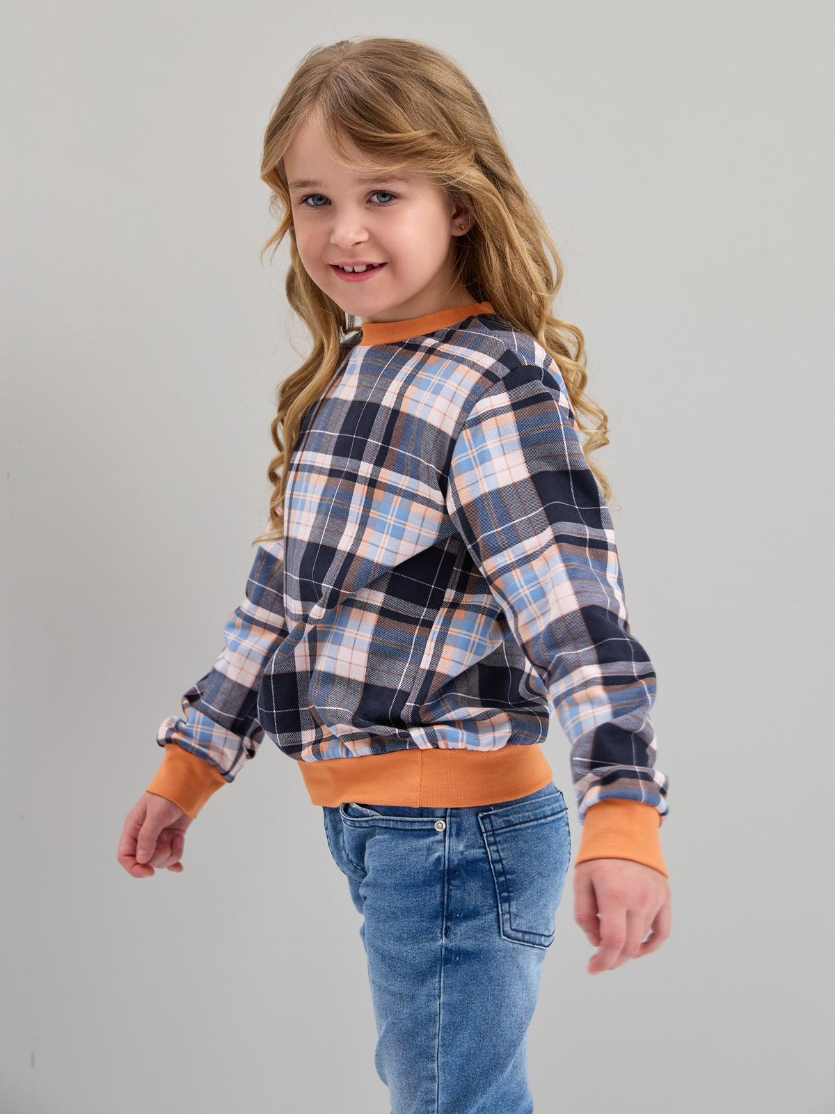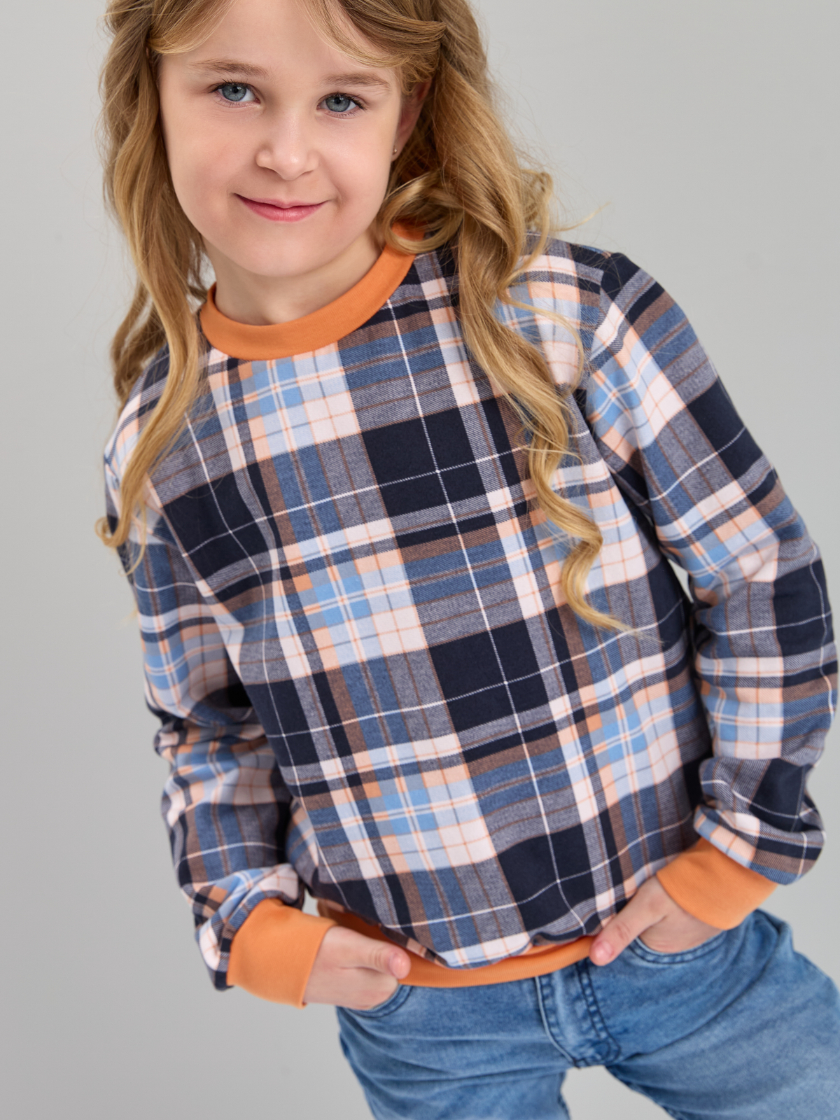 Детский свитшот дСВ-51/клеткасиний-бежголубой